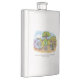 The product is a good size and came exactly as it was pictured. The lid is not attached to the flask, which could be dangerous on drunken nights... The print came out surprisingly well and looks very sharp. Would definitely recommend.