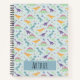This cute and trendy kids school notebook design features a pastel blue dinosaur cartoon pattern, with a t-rex, stegosaurus, rainbows and jurassic jungle plants, can be personalized with your boys name. The perfect dinosaur themed gift for your child's school supplies!