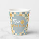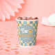 These groovy boys 2nd birthday paper cups have a blue pastel chequered border, and include space for a name. Perfect for a cute "Two cool dude" boho birthday, this playful blue smile design adds charm to your little one's special day!