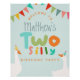 Ce joli et fantaisiste garçon 2e anniversaire design de signe d'accueil comprend deux oies idiotes avec des casquettes de fête, et peut être personnalisé avec un nom de vos garçons. L'affiche est également ornée d'un arrière - plan bleu, et d'un bunting coloré pour la fête. Le design de ferme parfait pour le deuxième anniversaire de votre petit!