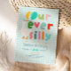 This cute boys 2nd birthday Favour sign design features one silly goose with a party hat, and can be personalized with a your boys name. The poster also features a blue background, and text “favours, please take one”. The perfect farm design for your little one's first or second birthday!
