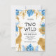 Boys Two Wild 2nd Birthday Blue Gold Safari Invitation