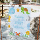 Under the sea birthday welcome sign for a baby boy featuring various sea creatures or critters and seaweed. This boy's under the sea birthday welcomes sign is ideal for a little boys under the sea themed birthday party.