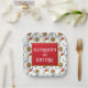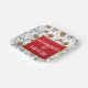Set against a stark white background, this square paper plate features a bold Viking warrior mask, wooden shield, axe, bow and arrow, sounding horn and a ham. The white text templates are easy to read and customizable with your child’s name, age, and party details. And, the red inlay edged with faux gold makes the wording stand out against the seamless pattern