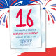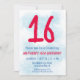 16th birthday kids boy blue party 16th birthday party invitation for a 16 year old boy with fun fonts writing and fun watercolor number.