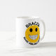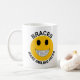 Braces Make Smiling Faces Hot Beverage / Coffee Mug. Great gift for a dentist or orthodontist, or dental staff member. Give to kids with braces for a fun cup of hot chocolate! Marketing, gift-giving, dentist or orthodontist office kitchen, etc. Cute yellow face wearing braces.