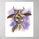 A goofy Brahman cow caricature with oversized floppy ears, and a friendly, wide-eyed expression against a purple background.