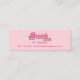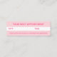 A professional mini appointment card for a braiding business. Featuring the word "braids" in a groovy retro style. The front of the card features your name and contact details. The back of the card has space for you to write a date and time for a customer's next appointment, along with a reminder of your cancellation policy. The text templates can be easily personalized.
