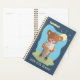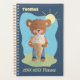 A fun academic planner for kids with a brown bear getting a brain freeze on the front and an ice cream cone pattern on the back . Personalize it with the child's name and school year . Choose the size of the planner , the type of cover your want (hard or soft) and the spiral color .