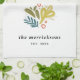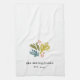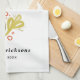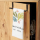 Cheerful custom kitchen towel featuring hand drawn botanicals and custom name and details.