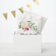 The wedding favour bag showcases elegant eucalyptus branches with delicate white flowers, soft pink roses, and lush greenery. The couple's names are prominently featured in a bold and stylish typography, adding a personalized touch to the design. Additionally, a heartfelt 'Thank You' message is thoughtfully included to express gratitude to the guests for sharing in their special day. To elevate the overall aesthetic, a chic sage green band is elegantly placed at the bottom of the bag, exuding a sense of sophistication and charm.