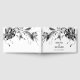Branch with black and white flowers wedding guest book. This sophisticated wedding guest book serves as a perfect means to commemorate the joyous event and safeguard the memories of your extraordinary day. Adorned with a beautiful floral garland in elegant black and white hues, along with your names elegantly inscribed, this guest book enhances your wedding theme beautifully. It not only acts as a treasured memento that you will hold dear for years, but it also provides a lovely reminder of your special day for all attendees.