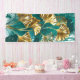 Branch with jewellery, gold and green leaves of Ginko biloba on light, painted green background. Ginko biloba