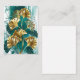 Branch with jewellery, gold and green leaves of Ginko biloba on light, painted green background. Ginko biloba