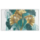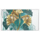 Branch with jewellery, gold and green leaves of Ginko biloba on light, painted green background. Ginko biloba