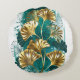 Branch with Golden Leaves Ginko Biloba Round Pillow