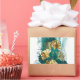 Branch with jewelry, gold and green leaves of Ginko biloba on light, painted green background. Ginko biloba