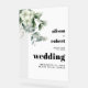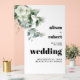 Bienvenue dans votre mariage avec ce charmant panneau acrylique. Il présente un cadre blanc et des branches d'eucalyptus avec fleurs blanches et feuillage vert sauge sur le coin supérieur gauche. Le bord gauche du panneau est transparent, tandis que la typographie audacieuse chaudement invitations participants pour célébrer votre union.