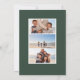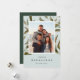 Elégant carte photo de vacances botanique met votre photo de famille préférée sur un arrière - plan de feuilles peints à la main vert et marron, sur un arrière - plan vert sauge pâle. Personnalisez avec vos noms ou votre nom de famille sous un message de Noël ("bénédictions de comptage") en lettres élégantes et classiques. Ajoutez trois photos supplémentaires au revers sur un arrière - plan vert chasseur contrastant, avec l'année.