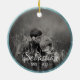 This lovely memorial ornament can be customized with your own textures for the frame and front background. Add a photo of your loved one with their name and years to remember. It features galaxy stars with a frame of branches, leaves, and butterflies.