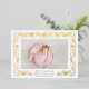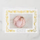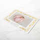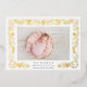 Les annonces de naissance élégantes présentent votre photo de nouveau-né horizontale ou paysagère préférée enveloppée de branches botaniques et de feuillage en feuille d'or. Le nom du bébé, les statistiques de naissance et la signature de votre famille apparaissent en dessous. Ajoutez six photos supplémentaires au dos dans une mise en page collage ou supprimez pour laisser vide.