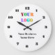 Custom Colors and Fonts - Design Your Own Personalized Wall Clocks example with Your Company Logo and Name or Custom Text Branded Business Promotional Clocks template / Corporate Gifts - Make Unique Your Own Design - Add Your Logo - Image - Photo or QR Code / and Name - Company or Cotnatct Information / Social Media / Pore - Resize and move or remove and add elements / image with Customization tool. Choose / add your favorite clock / or numbers and text colors / font / Size ! Please use your logo - image that does not infringe anyone's Copyright !! Transferable ! Good Luck - Be Happy :) by MIGNED