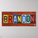 BRANDON License Plate Letter Name Custom Sign Poster by Design Turnpike. Don't see the name you want? Email designturnpike@gmail.com to request a name!