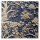 This ceramic tile features a beautiful tree with brass flowers set against a blue background. The intricate golden and blue mural with flowers creates a captivating visual experience. The relief sculpture design, in dark navy and light beige, adds depth and texture. The pattern is repeatable and seamless, making it a versatile choice for various spaces.