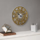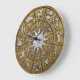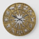 10.75” round acrylic wall clock with an image of a brass and silver astrology wheel.
