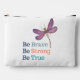 Modern and inspirational makeup bag features Be Brave, Be Strong, Be True. Purple dragonfly Word Art style