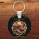 This custom keychain features a Fire Department's Badge of Honour design, set against a striking black and red background. The badge is adorned with two fire axes, symbolizing bravery and heroism, and is held by a silhouette of a fireman in action.