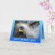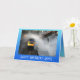 A happy birthday greetings card with greetings and words you can personalize. It has a photo of a diesel engine braving the waves crashing over the Dawlish sea wall railway line.
