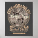 Brawley City, Californie dans un style vintage de design avec le drapeau de l'état de Californie, incorporée et coordonnées emplacement dans Imperial County. L'image est Annuel Cattle Call Rodeo à Brawley.
