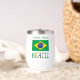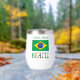 Thermal wine tumbler features, on both front and back, the flag of Brazil and the word BRAZIL, underneath, in the colours of the flag. Above, a place for name, in green letters. Great gift for Mom for any occasion, but especially for Mother's Day. Fun to take to family reunions, travel groups, and clubs.