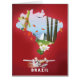 Brazilian travel poster featuring the landscape and wildlife of the nation in a beautiful hand created art print.