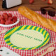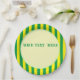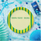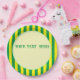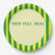 Yellow and green stripes. Custom paper plates. Edit text to customize.