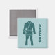 This personalized refrigerator magnet is perfect for fans of Brazilian Jiu Jitsu or BJJ. Students and instructors will love this magnet which features an illustration of a BJJ gi or uniform in teal against a light blue coloured background. It's ready to be personalized with a name beside the graphic in matching teal.