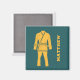 This personalized refrigerator magnet is perfect for fans of Brazilian Jiu Jitsu or BJJ. Students and instructors will love this magnet which features an illustration of a BJJ gi or uniform in golden yellow against a teal coloured background. It's ready to be personalized with a name beside the graphic in matching yellow.