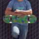 Painting of hyacinth macaws in the Brazilian jungle by avian artist Carolyn McFann of Two Purring Cats Studio. A cool skateboard for parrot lovers.