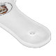 Small white, bread & cheese glass cutting board. This cutting board has a handle and a hole to hang it up.