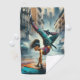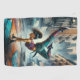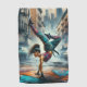 The design shows a lively scene in which a break dancer women performs in full swing on the street. The main character, the break dancer, is in the middle of a powerful handstand.