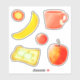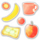 Breakfast stickers; toast, banana, apple, tea mug and two tomatoes.