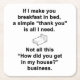 For the sarcasm lover in all of us. Check out this witty “If I Make You Breakfast in Bed a Simple Thank You is all I Need. Not All This How Did You Get in my House Business” design on apparel and gifts.