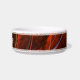 This is a heavy, durable bowl decorated with Tibbies of many colors, the perfect size for hungry/thirsty Tibs. The design is interesting and printing clear.