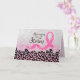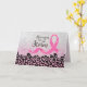 Inspirational quote breast cancer awareness stronger than the storm with pink ribbon and black leopard print.