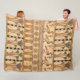 This magnificent throw blanket bears the sacred registers of life, painted in the timeless, muted palette of desert ochre, earth red, lapis blue, malachite green, and soot black. Applied in flat areas of color within the bold, unwavering outlines of truth, the design mirrors the greatest murals of the western cliffs.