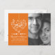 This SAVE THE DATE photo postcard features a heat design filled with flowers on a golden ribbon. Delicate and elegant. And it's a thrifty way to make your special announcement. Easily customized. Lots of colours. (pumpkin)
