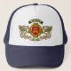 The trucker hat above features the Brennan/O'Brennan Irish shield, set inside a Celtic cross, with griffins on either side. You may personalize your name on the top ribbon or whatever fits! Show off your Irish pride at Celtic festivals, St Patrick's day, or wear at your next family reunion or gathering! Erin go Bragh!