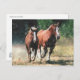 An oil painting effect design made from a photo of a Breton draught horse mare trotting with her foal cantering by her side.