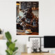 This energetic French Bulldog poster turns your wall into a hilarious coffee scene. The pup, dressed in a green and white flannel shirt with suspenders and glasses, is hard at work frothing milk and pouring a latte masterpiece. His bug-eyed focus shows he’s deep in the grind. “Bark Roast” and other punny drinks fill the chalkboard menu. Great for anyone who needs a boost of humour with their caffeine fix.